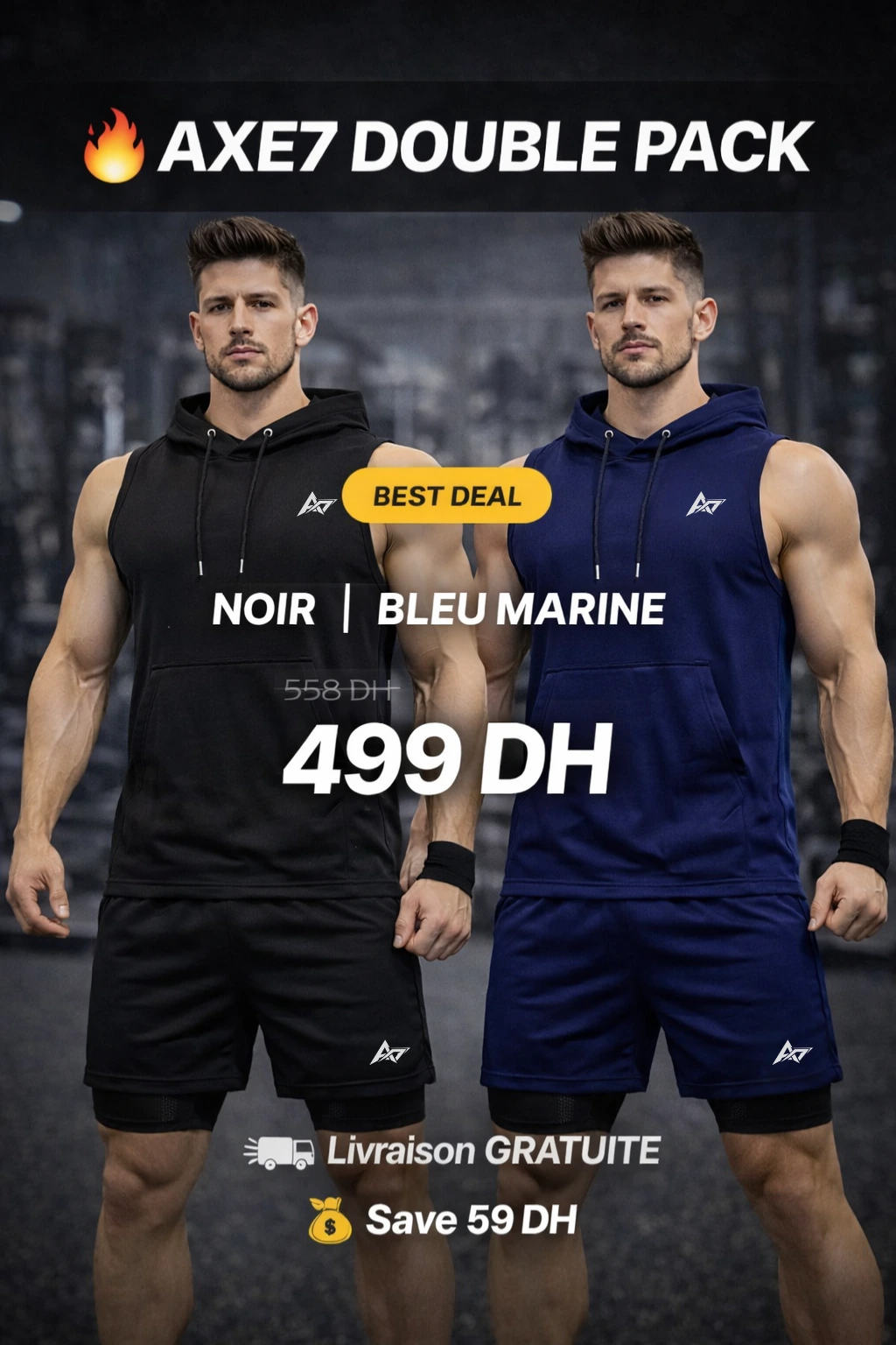 ENSEMBLE DE SPORT (Débardeur à Capuche et short 2 en 1)