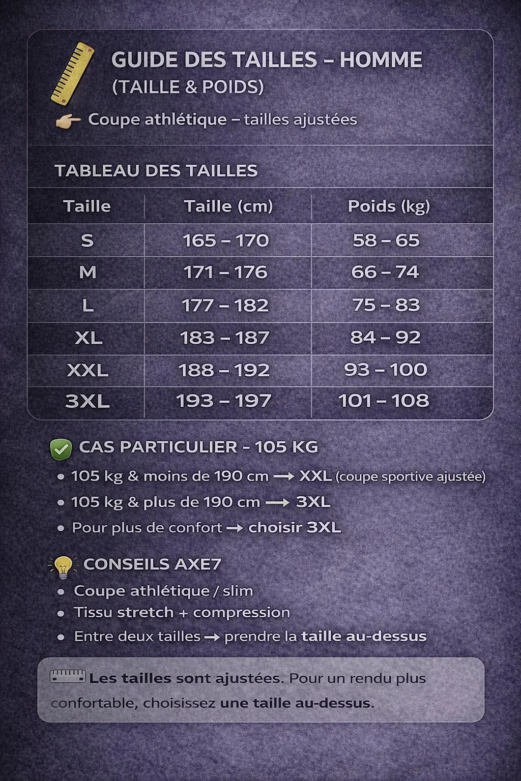 Choisissez votre taille adaptée 🏋️♂️